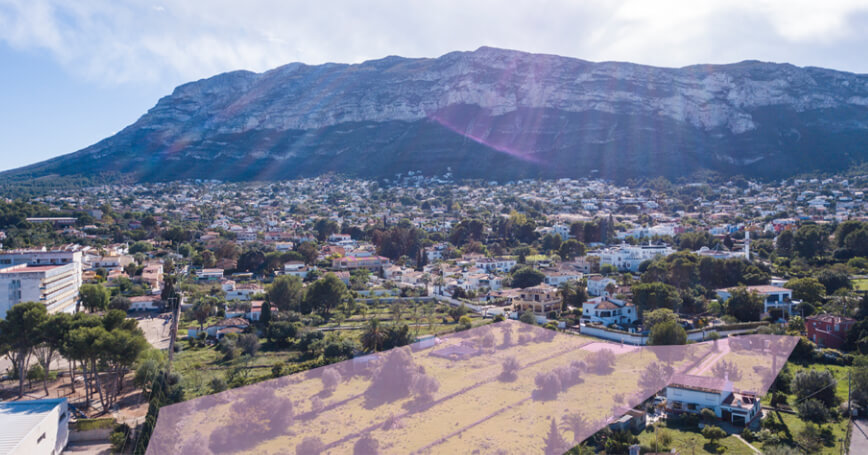 Nach Südosten ausgerichtet genießt das flache Grundstück den ganzen Tag Sonne und die schöne Aussicht auf den Montgo.