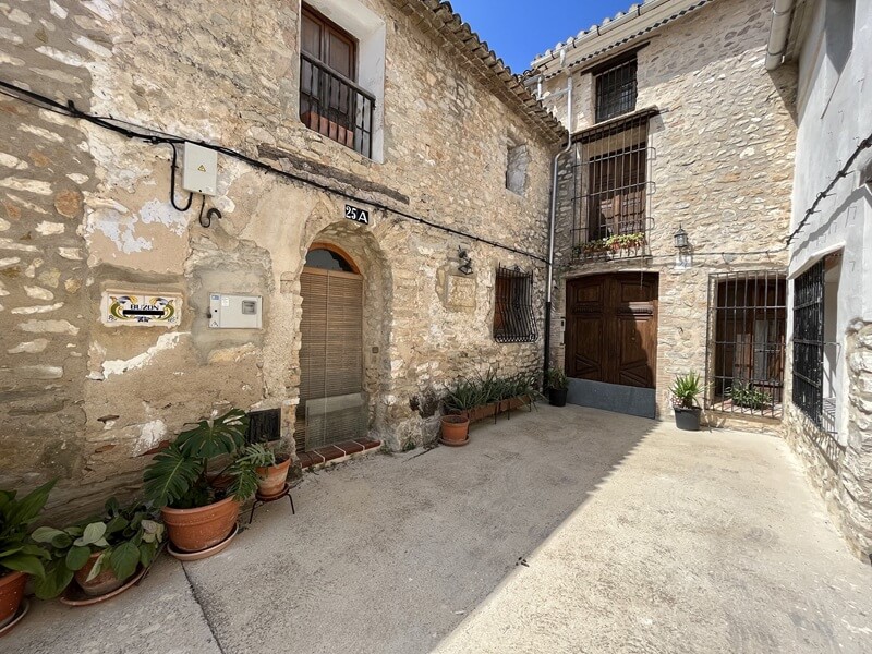 La planta baja de la propiedad cuenta con un encantador salón con paredes de piedra, vigas de madera y una chimenea, un patio de 20 m² con un baño y una cocina tradicional. En el siguiente nivel, la casa adosada tiene dos dormitorios dobles y la planta superior tiene un espacio abierto dividido en dos que se utiliza también como dormitorio.