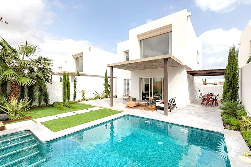 These amazing 3 bedroom, 4 bathroom villas are located on the exclusive Las villas Agaves development in Mar de Cristal near La Manga and are only 300 metres from the beautiful beach. There is a selection of shops, bars and restaurants nearby and the La Manga club resort is less than a ten minute drive away.