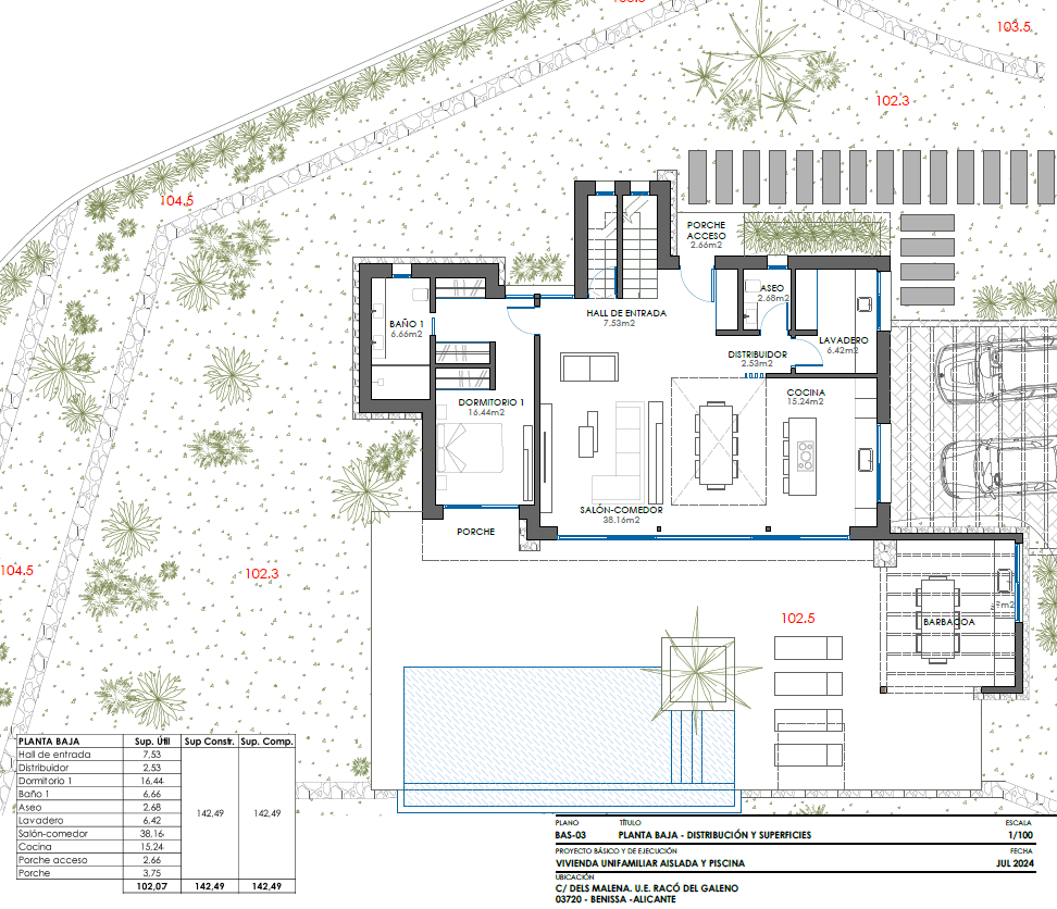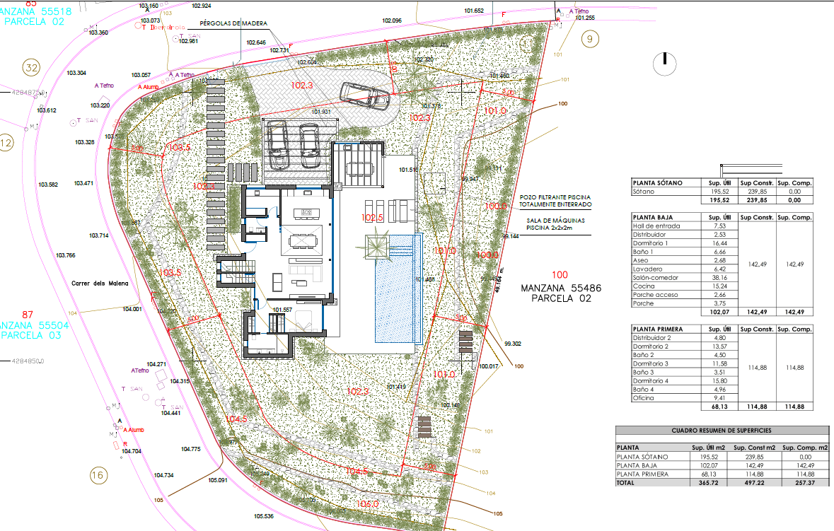 Outside, there is a large terrace with an infinity pool. A summer kitchen and surely comfortable sun loungers invite you to enjoy the sun. In addition, the garden is landscaped with indigenous plants that require little maintenance, creating a natural and harmonious environment. The plot measures 1350m2.
