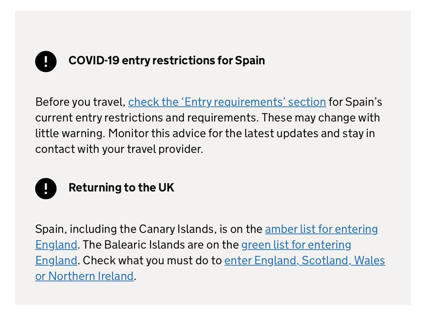 We hope the link below helps you with more up-to-date information and we look forward to seeing you here in Spain soon.